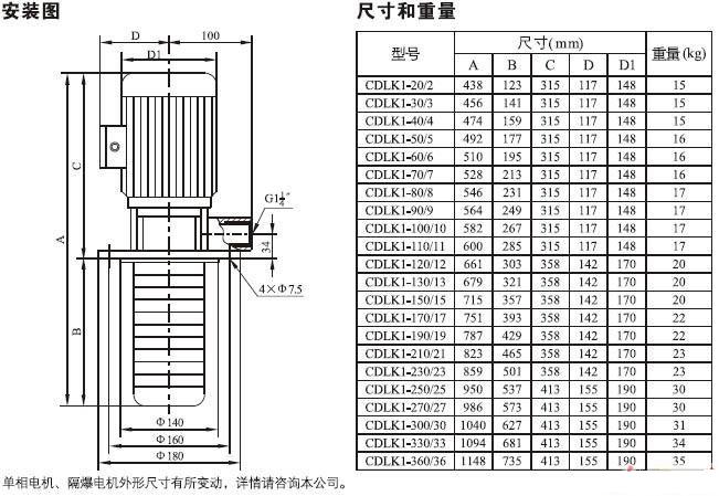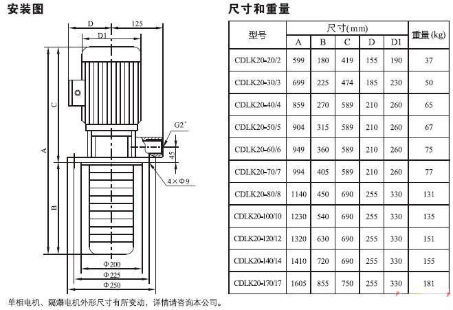 CDLK/CDLKF浸入式多級離心泵安裝尺寸