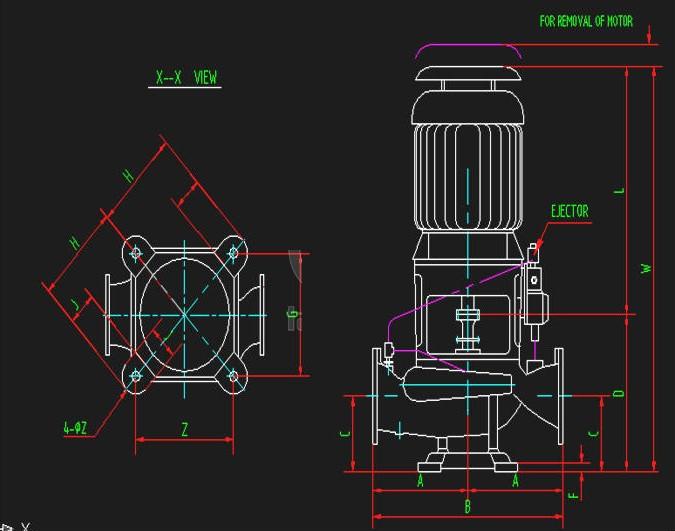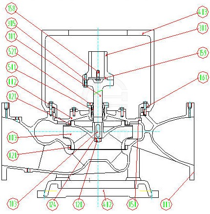 該泵為臥式單級單吸結構,主要有泵體,泵蓋,葉輪,泵軸,電機聯接架,剛性聯軸器,軸封,導軸承,泵座等組成。
