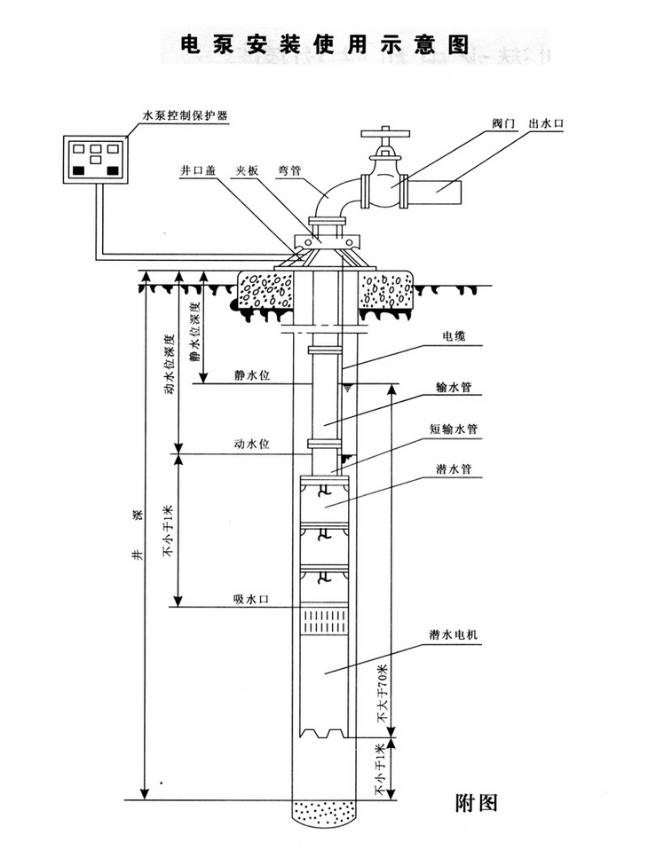 (4)熟悉安裝使用說明書,對新鉆的水井必須進行洗井,清除水中泥砂后,方能安裝QJ型潛水電泵。