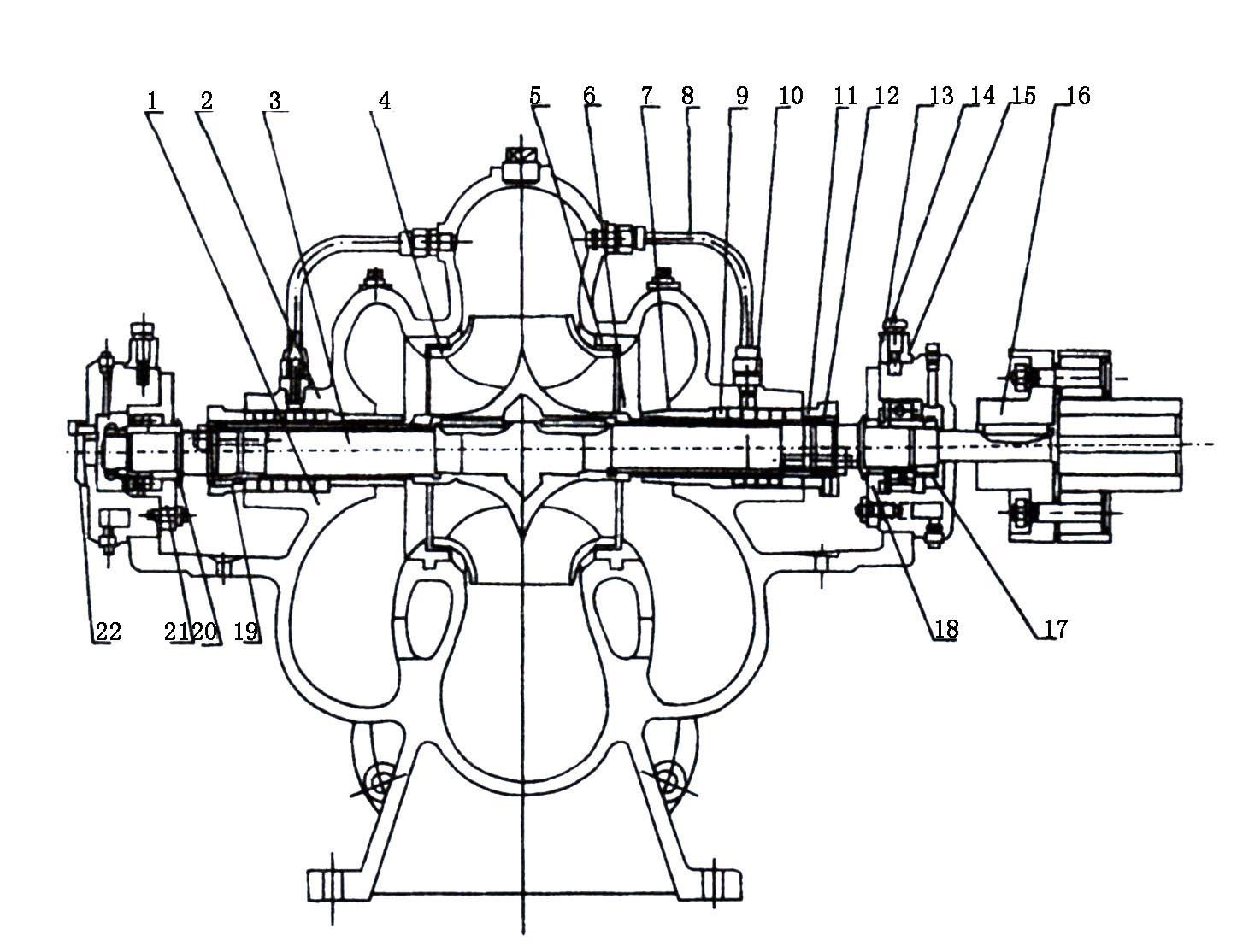 單級雙吸離心清水泵結構圖