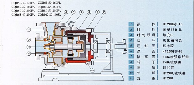 CQB型磁力泵是化工流程中杜絕跑、冒、滴、漏現象,消除環境污染,創造“無泄漏車間”、“無泄漏工廠”,實現安全、文明生產的理想用泵。