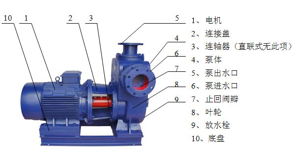 ZSL強自吸高揚程大流量直聯式雙吸自吸泵結構圖
