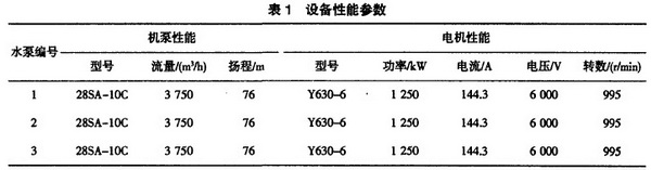 蘭州石化公司動力廠第三循環水場設計供水能力為7500m3/h。擔負著7套煉化裝置循環冷卻水的供應。流程是從煉化裝置返回的壓力回水經DN900線回到循環水場,沿冷卻塔DN800上水立管上塔,經過配水和淋水裝置。進行通風冷卻。冷卻后的水匯人塔下集水池。再通過聯通管流人冷水池。循環水泵房設置冷水泵三臺。冷水泵從冷水池吸取冷水后加壓外供,沿DN900管線雙路進入循環水管網,供生產裝置冷卻使用。按照生產要求供水壓力一般保持在O.4一O.7MPa之間,但在實際運行中發現,由于各煉化裝置開停工時間不一致。造成循環冷卻水供水壓力忽高忽低,用水量大時冷水泵效率較高,而在開工裝置少時,開兩臺工頻泵運行時壓力過高,出口閥門處于半開狀態時裝置能耗居高不下。導致冷水泵憋壓甚至引起機泵振動和發熱。使供水能耗升高同時容易使供水設備損壞。究其原因是三臺冷水泵性能相同、供水能力相等,見表1。在用水量小時沒有調節手段。在生產用水量不是很大的時候.開一臺冷水泵水壓偏低不能滿足生產要求。開兩臺冷水泵又造成“大馬拉小車”現象。因此為了適應煉化生產的變化,降低供水系統能耗,改變供水系統的被動局面,采用高壓變頻器根據水壓變化控制循環水泵轉速以達到經濟合理運行的目的。