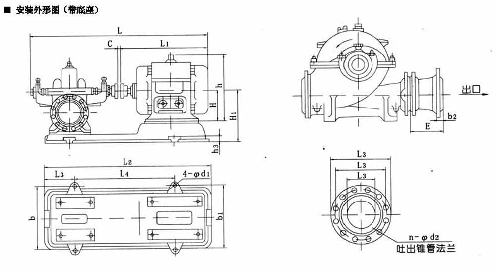 S、SH型單級雙吸大流量農田灌溉排水泵結構圖: