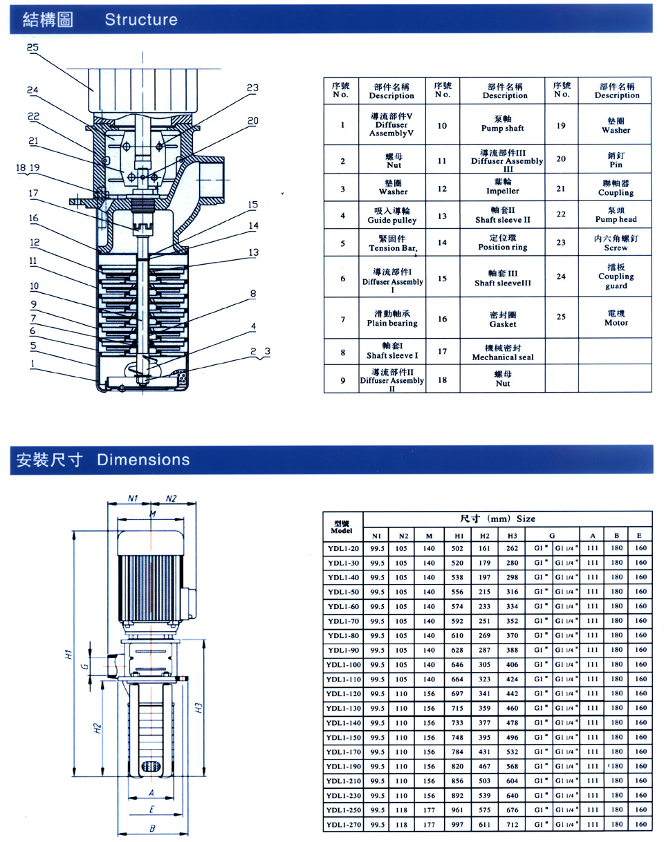 立式多級液下泵,機床冷卻泵,工業清洗泵結構圖