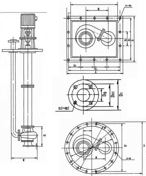 三、FSY、WSY型玻璃鋼液下泵安裝尺寸: