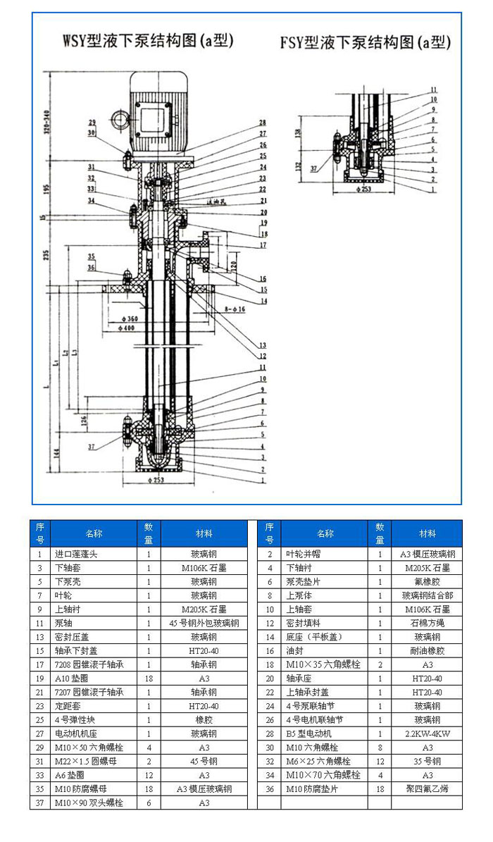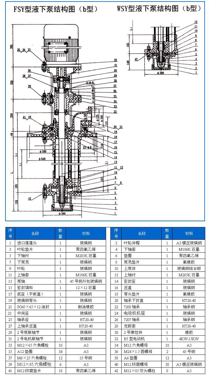 二、FSY、WSY型玻璃鋼液下泵參數(shù):
