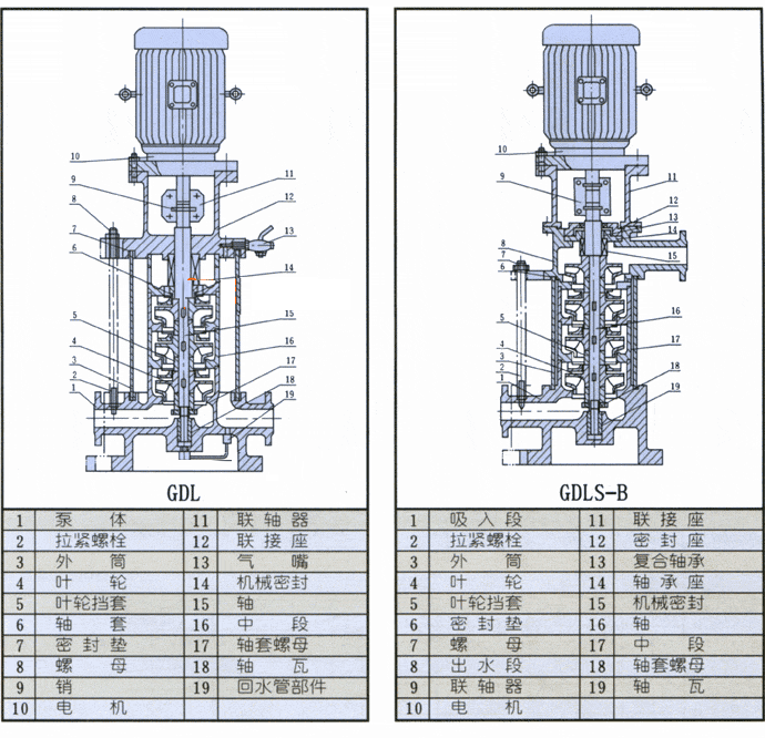 GDL型立式多級離心泵系參照國外先進產品設計制造的。葉輪、導葉和導流殼采用不銹鋼板材沖壓、拉伸、焊接成型,采用硬質合金機械密封及導軸承。具有體積小、重量輕、效率高、節能、振動噪音小、運轉平穩、使用壽命長、立式安裝、占地面積小、重量輕和外形美觀等顯著特點,是理想的更新換代產品。 GDL便拆式管道多級離心泵產品特點 1、泵為立式結構,具有占地面積小的特點,泵重心重合于泵腳中心,因而運行平穩、振動小、壽命長。 2、泵口徑相同且在同一水平中心線上,無需改變管路結構,可直接安裝在管道的任何部們,安裝極為方便。 3、電機外加防雨罩可直接置于室外使用,而無需建造泵房,大大節約基建投資。 4、泵揚程可通過改變泵級數(葉輪數量)來滿足不同要求,故適用范圍廣。 5、軸封采用硬質合金機械密封,密封可靠,無泄漏,機械損失小。 6、高效節能,外形美觀。 7、注50口徑以上內件鑄件成形。 GDL便拆式管道多級離心泵產品用途 GDL型系列泵特別適用于鍋爐給水,也可廣泛應用于壓力容器供水、熱水循環、高層建筑給水、農田灌溉、消防增壓、水力沖洗、食品、釀造、醫藥、化工、水產養殖、環境保護、化工工藝流程及機床配套等各行業,作為給水排水的動力設備。