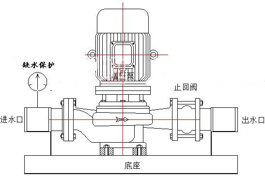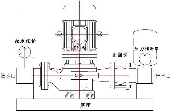 立式單級管道式自動增壓泵:增壓泵采用鑄鐵GD型立式單級管道式離心泵,管路部分則默認采用鋼塑管。