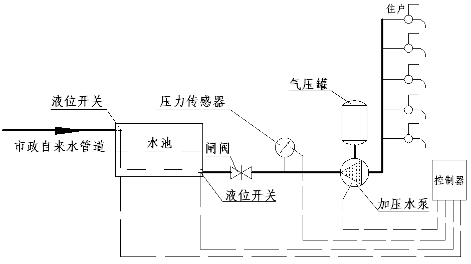 壓差式(非變頻)全自動管道增壓泵系統示意圖