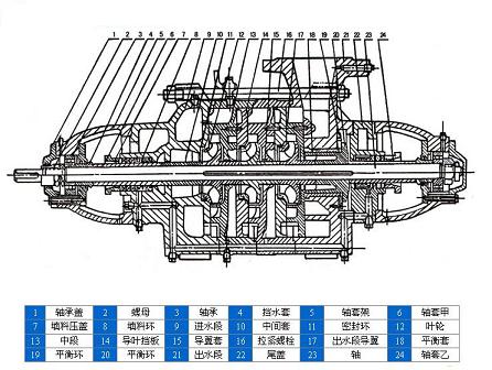 D型泵系單吸多級分段式離心泵,供輸送清水及物理化學性質類似于水的液體之用。本泵揚程為19-245.7m,流量為18至162m3/h。液體的高溫度不超過80℃,廣泛應用于礦山排水、工廠及城市給水之用。