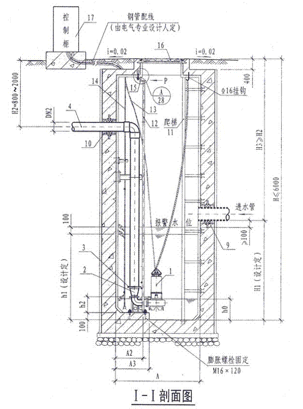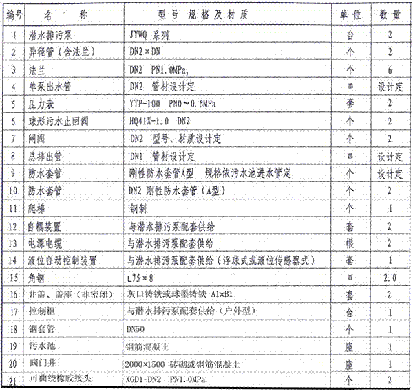 4.潛水排污泵控制柜安裝位置由單項工程設計考慮,其型號規格可由泵廠配套供應。池外電線電纜應穿管敷設。