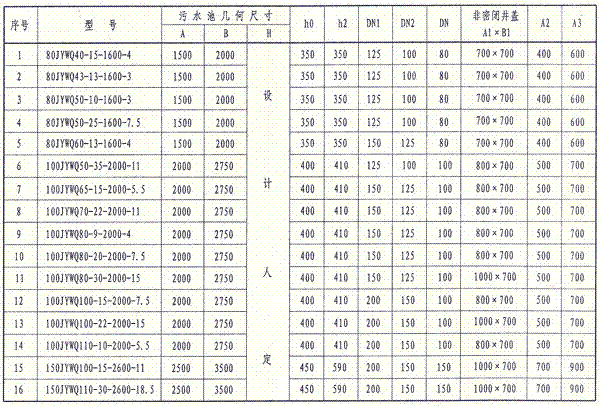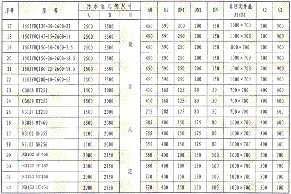 注:設計人員也可根據實際情況確定污水池(集水坑)的平面尺寸。污水池(集水坑)深度應小于等于6.0m.