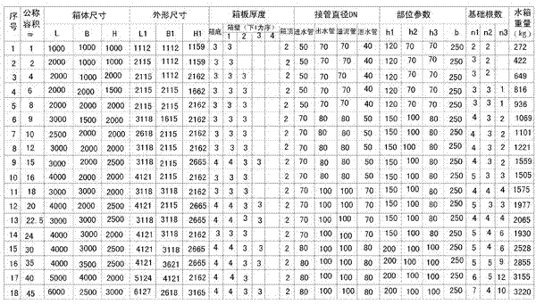 注:1.對高強度搪瓷給水箱厚度δ,凡用3、4者,均為5
