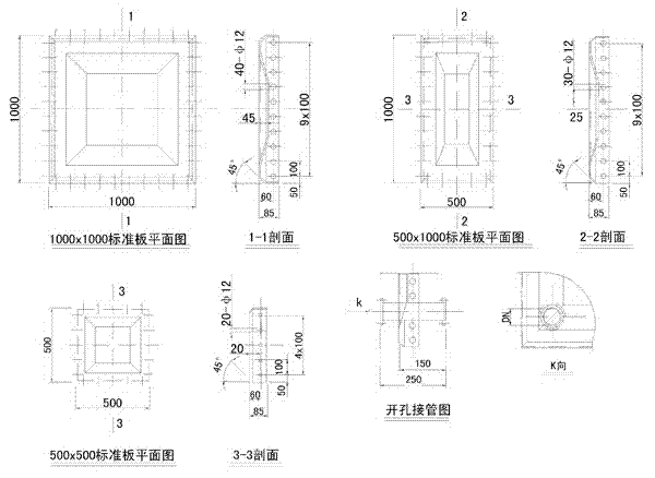 注:三種板塊均可在板內開孔接管,其開孔位置應盡量向板塊中心設置,而開孔接管外園與箱板翻邊的小距離不小于30