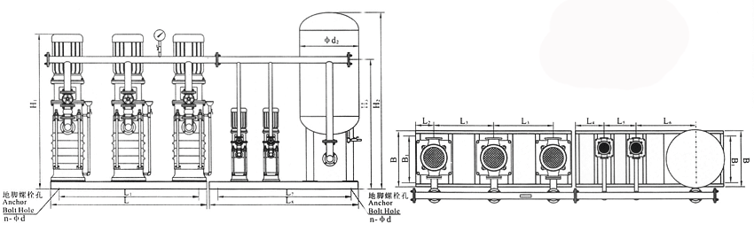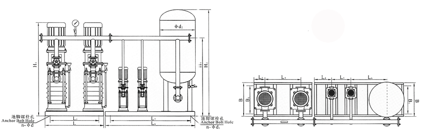 自動變頻恒壓成套生活給水設備安裝尺寸參考圖