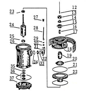 6、潛水泵的葉輪,整件密封盒,尼龍軸承座,不銹鋼軸套橡皎擴(kuò)張件,護(hù)套、等一些易損另部件,以及各種"O"型橡膠封環(huán),加油螺孔上的橡膠襯墊等可向當(dāng)?shù)剞r(nóng)機(jī)部門聯(lián)系或向本廠銷售科函購。