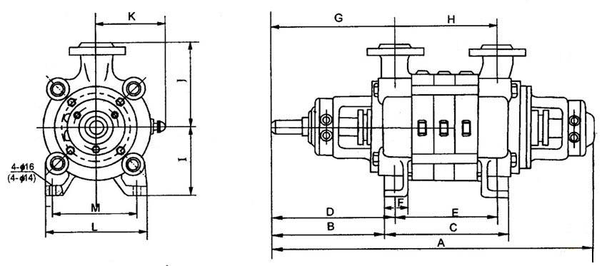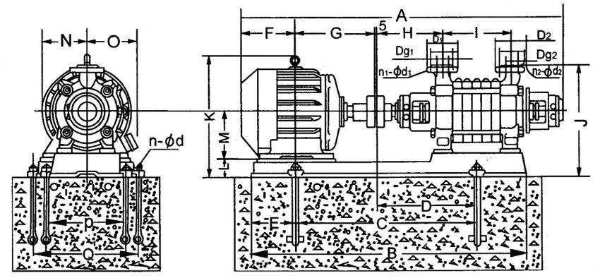 GC型臥式多級(jí)鍋爐給水泵安裝尺寸圖: