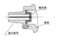 5.自吸泵的進口束節重裝時,請注意阻水閥應向正面,以便與阻水閥正面貼合保證白吸效果(見右下圖)。
