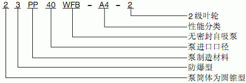 假設水泵的要求是:造型為長方形防爆型,其它要求同上,這臺水泵的完整型號為“1.3BXG40WFB-A4-2”。