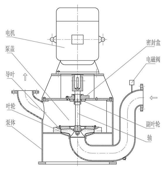 普通離心泵,若吸入液面在葉輪之下,啟動時應預先灌水,很不方便。為了在泵內存 水, 吸入管進口需要裝底閥,泵工作時,底閥造成很大的水力損失。所謂自吸泵,就是在啟動前不需灌水(安裝后第一次啟動仍然需灌水),經過短時間運轉,靠泵本身的作用,即可以把水吸上來,投入正常工作。