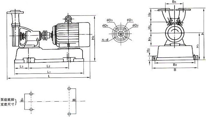 W型軸聯式旋渦泵結構圖及安裝尺寸圖