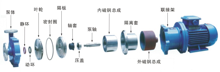 磁力泵輸送介質中不允許含有含鐵有鐵磁性的雜質或硬質雜質。