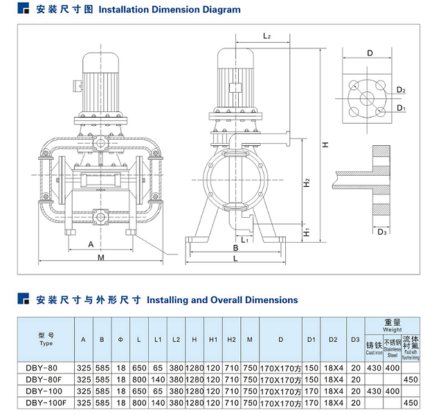 DBY-100立式臥式襯氟電動(dòng)隔膜泵安裝尺寸區(qū)別