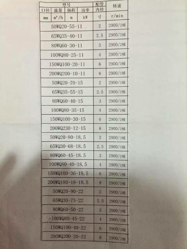 WQ潛水排污泵本公司新生產出11KW-22KW,二級2900r/min電機座,口徑DN50-200mm,揚程高可達100米,填補了國內空白,具有高效能,運行穩定,質量可靠.