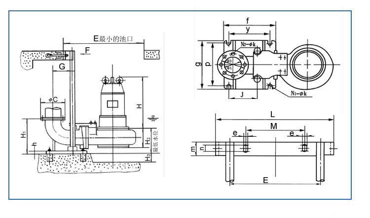 WQ固定潛水式無堵塞排污泵安裝尺寸圖: