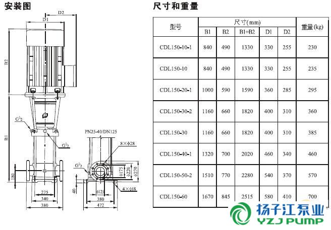 CDLF系列輕型不銹鋼立式多級泵安裝尺寸)