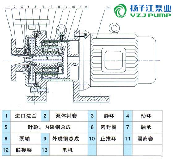 CQB-F型氟塑料磁力驅動泵(結構圖)