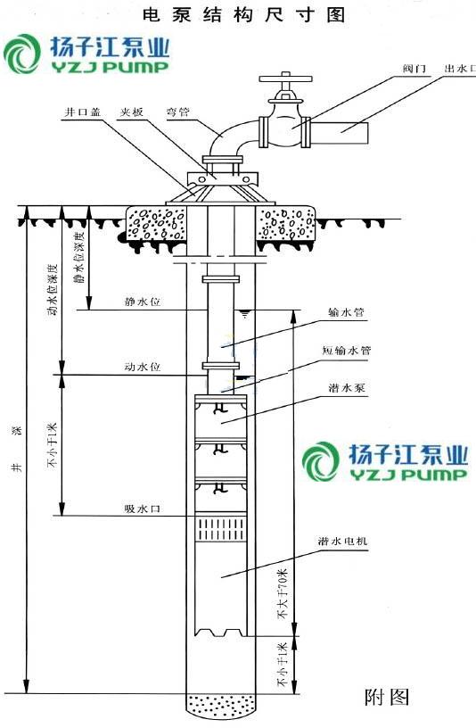1.QJ型潛水電泵機(jī)組由:水泵、潛水電機(jī)(包括電纜)、輸水管和控制開(kāi)關(guān)四大部分組成。潛水泵為單吸多級(jí)立式離心泵:潛水電機(jī)為密閉充水濕式、立式三相鼠籠異歩電動(dòng)機(jī),電機(jī)與水泵通過(guò)爪式或中.鍵筒式聯(lián)軸器直接;配備有不同規(guī)格的三芯電纜:起動(dòng)設(shè)備為不同容量等級(jí)的空氣開(kāi)關(guān)和自耦減壓起動(dòng)器、輸水管為不同直徑的鋼管制成,采用法蘭聯(lián)接,高揚(yáng)程電泵釆用閘閥控制。