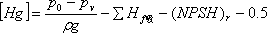 ③由(NPSH)r計算泵的大允許安裝高度[Hg] 一臺泵的必需汽蝕余量(NPSH)r數值由泵的生產廠家提供,供用戶計算泵的大允許安裝高度[Hg]: (m) 離心泵的實際安裝高度只要低于大允許安裝高度[Hg]就不會發生汽蝕。