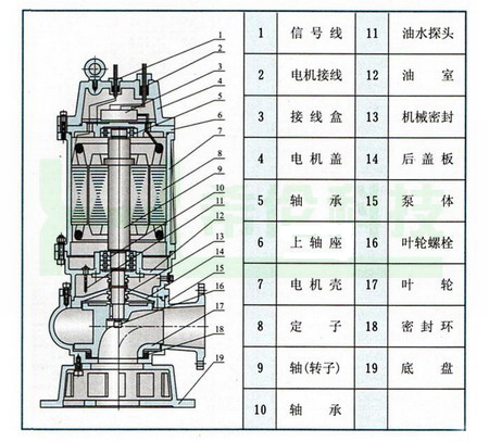 油室內裝有漏水檢測探頭,當機械密封損壞后,水進入油室,探頭發生信號由控制系統對泵實施保護。 | |