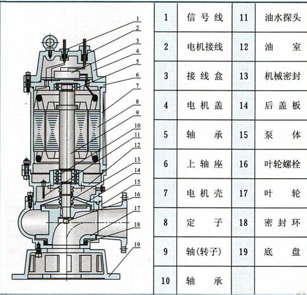 三、WQP型系列不銹鋼潛水泵的結(jié)構(gòu)簡圖