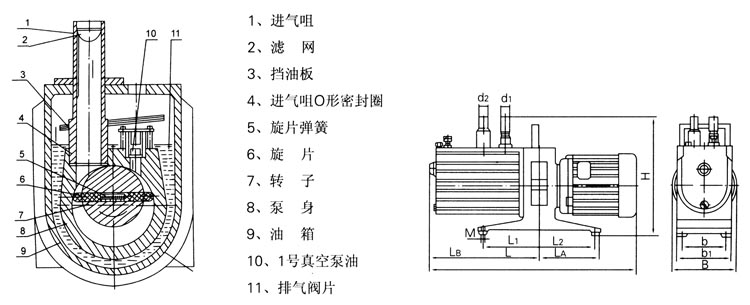 2XZ-2型直聯旋片式真空泵的結構圖及安裝尺寸圖