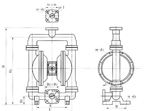 QBY型氣動隔膜泵外形安裝尺寸圖: