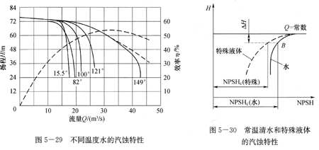 特殊液體是指和常溫清水不同的液體,如高溫水和油等。實(shí)驗(yàn)表明,不同溫度的水的汽蝕對(duì)泵性能影響的趨勢(shì)如圖5-29所示。