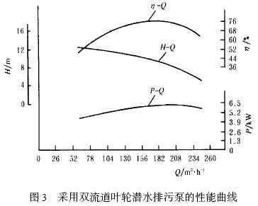 4) 雙流道葉輪的效率高, 高效區寬, 額定工況點泵的效率比CJ/T 303821995 標準的規定值高13. 04%。