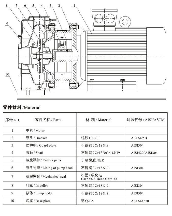 ZS型不銹鋼臥式單級離心泵為泵軸直聯(lián)型聯(lián)結(jié),由泵、泵軸和標(biāo)準(zhǔn)電機(jī)組成: