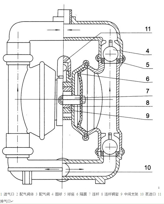 QBY型氣動隔膜式泥漿泵的結(jié)構(gòu)圖